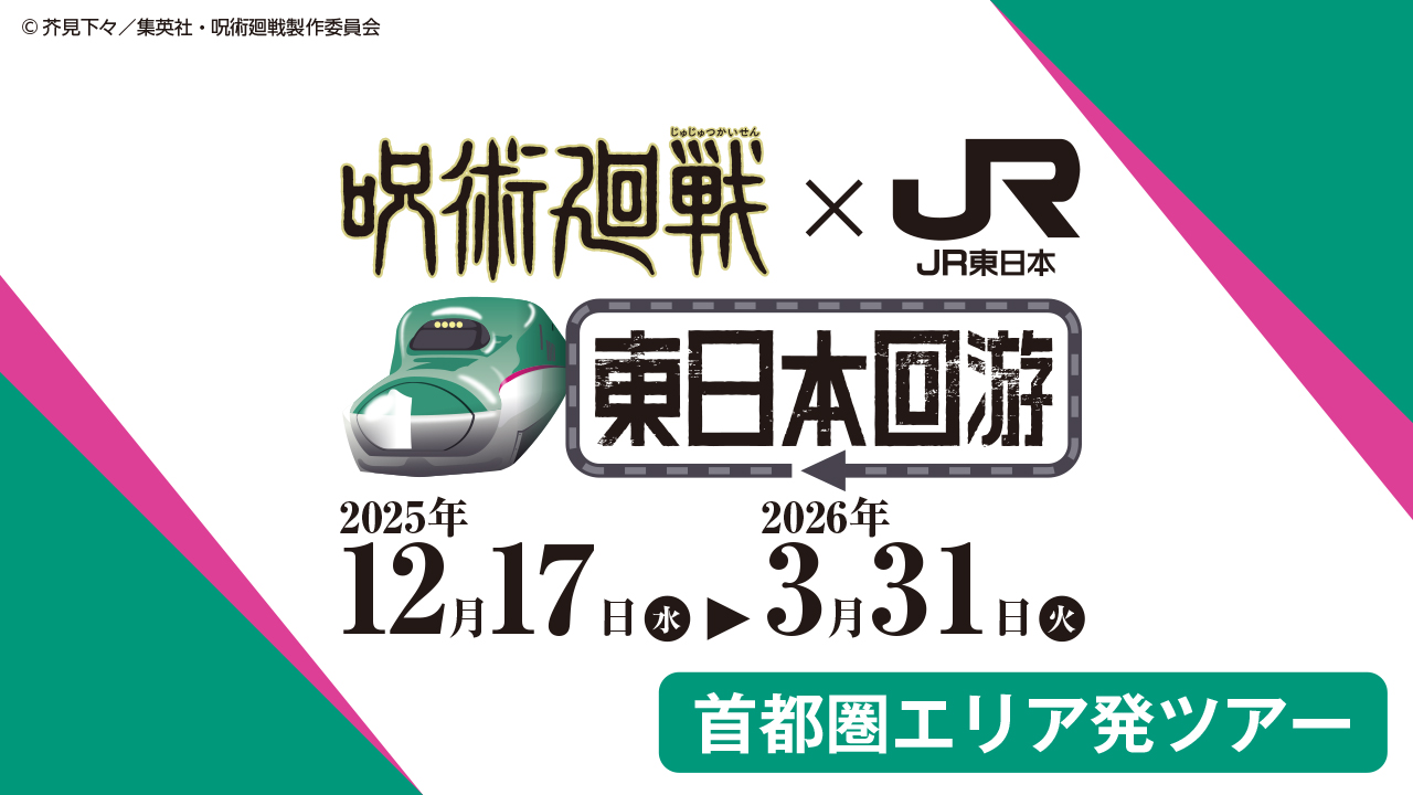 首都圏エリアからスタートする「呪術廻戦×JR東日本 -東日本回游-」のツアーです。