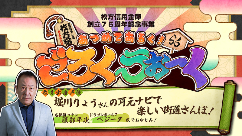 お江戸日本橋から56番目の宿、大名行列の本陣や旅籠も江戸期に賑わった「枚方宿」にあるとっておきなお店、一部歴史スポットを「名探偵コナン」服部平次役、「ドラゴンボールZ」ベジータ役でおなじみ枚方出身声優 堀川りょうさんがあなたの耳元で声ガイド!